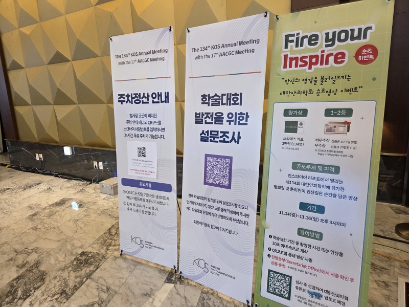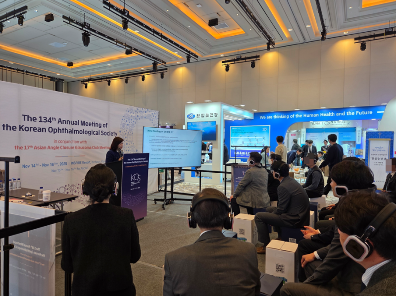 11월 14일부터 16일까지 사흘 간 영종도 인스파이어 리조트에서 ‘대한안과학회 제134회 학술대회·제17회 아시아 폐쇄각녹내장학회 학술대회’가 열렸다. 이번 학술대회는 최신 치료법, 수술 영상 등 전시하는 ‘필름 페스티벌’, 권위자 노하우를 공유하는 ‘Master’s Pearl’ 등 새로운 형태 세션도 마련됐다. E-포스터 전시장에서는 각 자리에 비치된 모니터를 통해 참가자들이 발표 자료·영상을 시청했다. 부스 전시장 가운데 마련된 작은 강연장에서 참석자들은 소음을 줄이기 위해 설치한 헤드셋을 끼고 강연을 청취했다. 이 시스템은 이번에 처음 도입됐으며 참가자들 반응은 긍정적이었다.