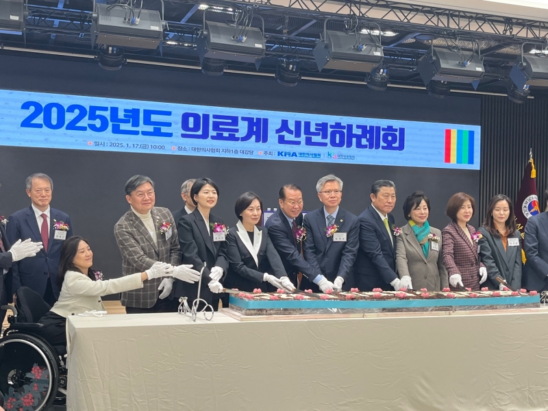 2025년도 의료계 신년하례회가 오늘(17일) 의협회관 대강당에서 열렸다. 이 자리에는 김택우 대한의사협회장과 이성규 대한병원협회장을 비롯한 의료계 인사와 권영세 국민의힘 비상대책위원장, 박주민 국회 보건복지위원장(더불어민주당), 안철수 국민의힘 의원 등 여야 국회의원 20여 명이 자리했다.
