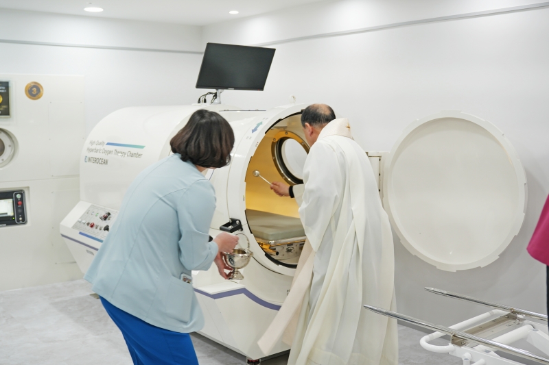 포항성모병원은 최근 경북 최대 규모 고압산소치료센터를 개소하고 축복식을 진행했다. 병원은 경북도와 포항시의 일부 지원을 받아 도내 최대 규모로 10인용 1대, 2인용 1대, 1인용 1대 등 총 3대의 고압산소치료기를 구비했다. 일주일의 시범가동 기간을 거쳐 신년 1월 2일부터 고압의학과 진료를 시작하며, 1월 6일부터 고압산소치료센터가 가동된다.