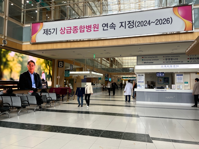 암센터에서는 암환자 디지털 케어 프로그램 안내문이 눈에 띄었다. 앱 기반 서비스를 통해 일정·복약·심리 상태 관리 등을 지원한다고 안내돼 있다. 병원 앞에서는 지역주민과 함께하는 바자회가 열려 의료서비스 고도화와 지역사회 연계 활동이 나란히 이뤄지고 있다.