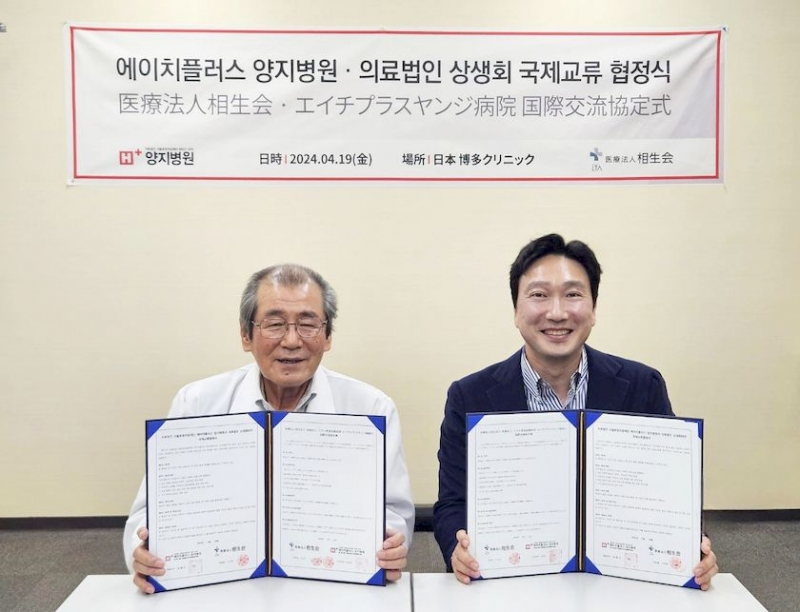 서울효천의료재단 에이치플러스 양지병원(병원장 김상일)은 최근 일본 소우세이카이 메디컬 그룹과 국제교류 협약을 체결했다. 김상한 행정원장을 비롯한 병원 관계자들은 소우세이카이 산하 후쿠오카 미라이 병원과 하카타 클리닉을 방문해 주요 시설을 견학하고, 협약식을 진행했다. 이번 협약으로 양 기관은 임상시험에 필요한 정보 공유 및 우호관계 구축, 인적 교류와 국제 경쟁력을 갖춘 임상시험센터 육성을 위한 상호 협력 발판을 마련했다.