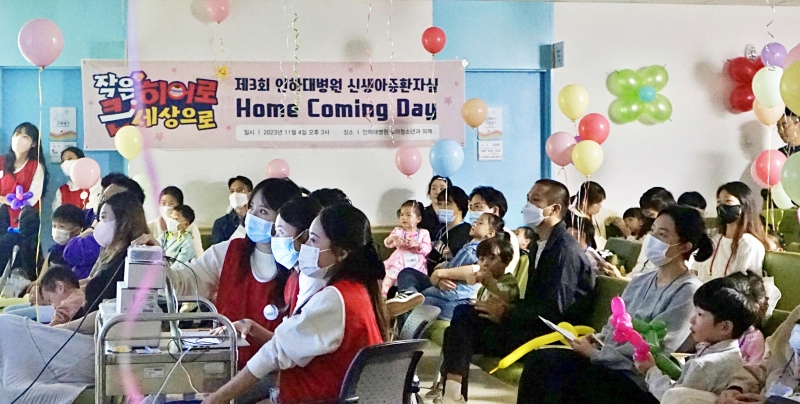 인하대병원은 최근 신생아 집중치료실에서 퇴원한 환아와 가족, 의료진, 봉사학생 등 80여명을 초대해 제3회 홈커밍데이를 개최했다고 10일 밝혔다. 이번 행사는 지난 2018~2021년 1,500g 미만 또는 32주 미만 미숙아로 태어나 치료를 받고 퇴원한 아이들과 가족들을 초대, 축하하기 위해 마련됐다. 전가원 센터장은 “부모님 및 의료진 사랑과 지지를 바탕으로 아이들이 혼자 배를 타고 항해하는 여정을 무사히 마치고 목적지에 잘 도착했다”며 “부모님 품에 안기고 감동적인 순간이 오게 된 것 같다”고 말했다.