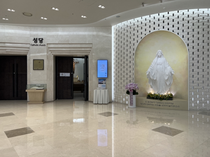 비가 세차게 내리는 9월 17일 오전 10시. 가톨릭대학교 은평성모병원은 차분한 분위기 속에 진료를 이어가고 있다. 병원 로비는 넓고 쾌적한 구조로 환자와 보호자, 내원객들의 동선이 원활하게 유지되고 있고 중앙 천장에는 설치된 대형 전광판에는 'VIP 병동 오픈'이라는 안내 문구가 송출되며 고급 병동 개방 소식을 알리고 있다.