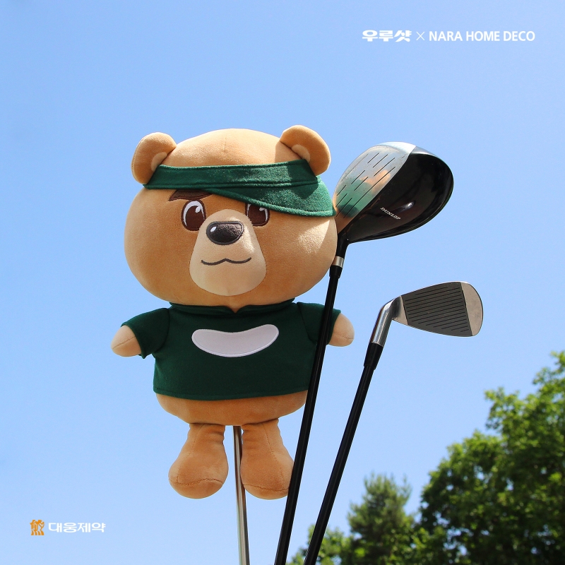 대웅제약이 홈데코 전문기업 나라홈데코와 피로회복 브랜드 ‘우루샷’을 활용한 골프 콜라보 굿즈 ‘우루샷 드라이버 커버’를 선보였다. 이번 제품은 우루샷 브랜드의 정체성을 담는 차원서 캐릭터 ‘우리’가 활용됐다. 대웅제약은 MZ세대 소비자들에게 즐거운 회복 메시지를 전달하기 위해 곰을 닮은 우루샷 캐릭터 ‘우리’를 개발했다.