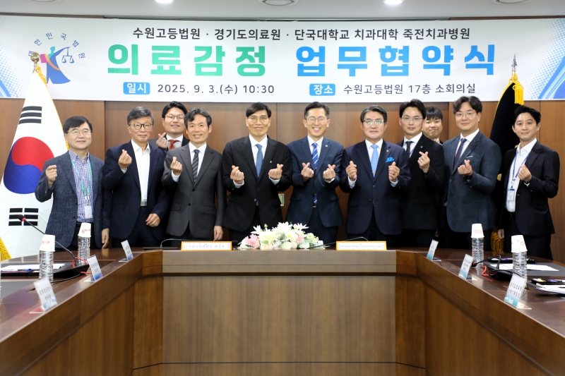 경기도의료원(의료원장 이필수)은 수원고등법원(법원장 배준현)과 ‘수원고등법원 관내 의료감정절차 발전을 위한 협약’을 체결했다고 5일 밝혔다. 이번 협약은 경기도의료원이 법원 의료감정 업무를 보다 신속하고 신뢰성 있게 지원, 재판 공정성과 전문성을 높이고자 마련됐다.