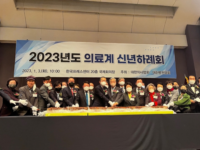 대한의사협회와 대한병원협회가 공동주최한 2023년도 의료계 신년하례회가 1월 3일 서울 중구 프레스센터에서 열렸다. 의협 이필수 회장은 "새해는 국민건강과 신뢰회복 활동을 우선으로 하겠다"고 밝혔다. 병협 윤동섭 회장은 "안전한 진료 환경 구축 및 글로벌 헬스케어 시장에 맞게 경쟁력을 키워 선도하는 한 해를 만들 것"이라고 강조했다.