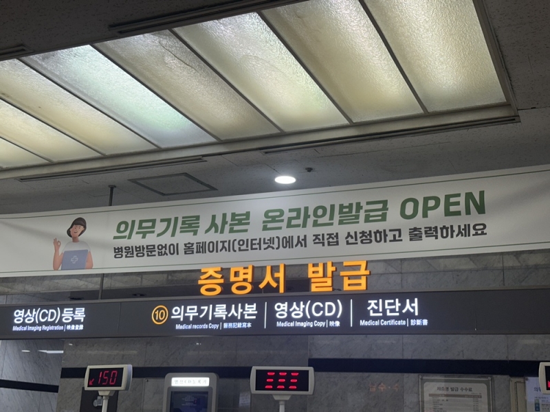 상계백병원은 최근 의무기록 사본 온라인 발급 서비스를 도입해 병원 방문 없이도 모바일 앱이나 홈페이지를 통해 신청과 발급이 가능하도록 했다. 이를 홍보하기 위해 병원 내에 관련 안내 현수막이 설치돼 있었다.