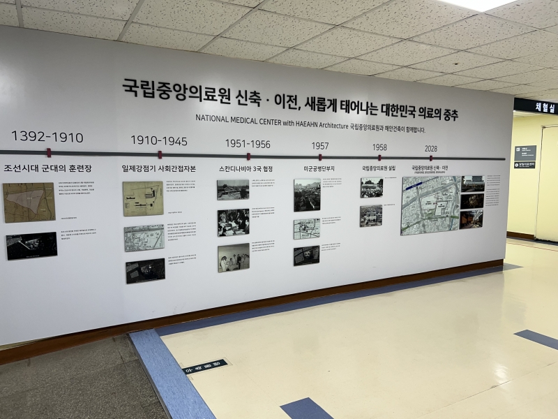 8월 28일 오후 1시. 국립중앙의료원(NMC) 본관 1층 로비에선 천장 보수 공사가 한창이다. 사다리가 설치된 공간 옆으로 방문객들이 지나가고, 접수창구 뒤편에는 새 병원 조감도와 병원 연혁이 전시돼 있다. 조선시대 훈련장부터 시작된 이 부지 역사는 2027년 신축·이전을 앞두고 새로운 전환점을 준비 중이다. 외벽은 세월의 흔적을 고스란히 간직하고 있지만 그 안에서는 공공의료 기능을 강화하기 위한 조직 개편과 수련 시스템 정비도 병행되고 있다.