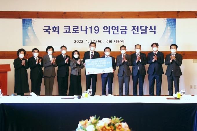 대한의사협회는 1월 27일 오전 국회 사랑재에서 열린 국회 의연금 전달식에서 코로나19 의연금 약 2억7000만원을 전달받았다. 코로나19 의연금은 의협을 포함한 6개 단체에 전달돼 코로나19 극복으로 어려움을 겪고 있는 이웃을 위해 쓰일 예정이다.