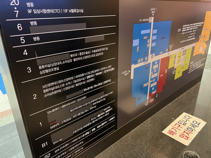 내부 곳곳에서도 공사는 계속됐다. 일부 진료과 외래와 외래 약국이 이전되면서 별도 이동 동선이 마련됐고 안내판과 지도를 통해 위치와 진입 경로를 안내했다. 병원은 "미래병원 구축을 위한 리모델링"이라며 양해를 구하고 있다.