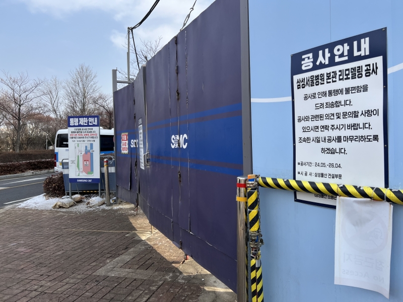 1월 19일 낮 12시, 영하권으로 떨어진 추위 속에 삼성서울병원은 리모델링 공사로 분주한 모습이었다. 본관 앞 진입로에는 공사용 가림막이 길게 설치돼 일부 동선이 통제됐고 환자와 보호자들은 안내문을 따라 지정된 방향으로 이동했다.