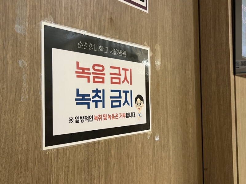 본관 1층 대기 공간에는 진료를 기다리는 환자들이 키오스크 주변에 모여 있었고, 일부 진료과 대기석은 환자들로 가득찬 모습도 관찰됐다. 특히 흉부외과 등 일부 진료과 입구에는 제약사 직원 출입을 제한한다는 안내 문구와 함께 환자들에게는 녹음·녹취를 금지하는 안내문이 부착돼 있었다.
