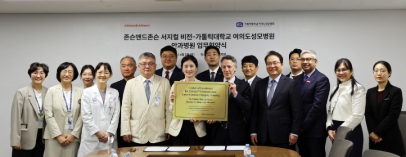 가톨릭대학교 여의도성모 안과병원이 글로벌 의료기기 기업인 존슨앤드존슨 서지컬비전과 손을 잡고 안과 분야 최신 의료기술 발전과 진료 역량 강화에 나선다. 여의도성모 안과병원은 4월 2일 원내 마리아관에서 존슨앤드존슨 서지컬비전과 의학적·학술적 협력 체계 구축을 위한 업무협약을 체결했다. 이날 협약식에는 강원경 여의도성모병원장과 나경선 안과병원장을 비롯해 존슨앤드존슨 기예르모 프리드먼 아시아·태평양 지역 총괄 사장, 성종현 한국 대표 등이 참석해 협력 의지를 다졌다.