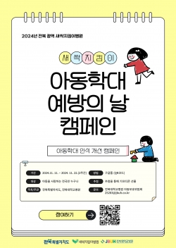 전북대학교병원(병원장 양종철)은 "오는 11월 11일부터 22일까지 아동학대 인식 개선을 위한 퀴즈 캠페인을 진행한다"고 8일 밝혔다.전북광역새싹지킴이병원이 주관한 이번 행사는 아동을 사랑하는 전국민 누구나 참여할 수 있다. 아동학대에 대한 올바른 인식을 확대하고 관심을 높이기 위해 마련됐다.퀴즈 참여는 캠페인 포스터에 포함된 QR코드를 통해 구글폼에서 간편하게 할 수 있다. 정답을 맞춘 참여자 중 추첨을 통해 기프티콘이 제공된다.캠페인 포스터는 전북대병원 내 본관 1층, 지하 1층에 부착되며 원내 전자모니터…