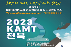 대한임상병리사협회(회장 장인호)는 오는 10월 13일(금)부터 14일(토)까지 양일간 전라북도 군산새만금컨벤션센터(GSCO)에서 ‘제61회 종합학술대회 및 국제컨퍼런스’를 개최한다.‘2023 KAMT 전북’으로 명명된 행사는 국내 임상병리사 최대 학술교류의 장으로, 다양한 연구결과 발표 및 연구진 간의 교류와 협력을 도모하기 위해 마련됐다.협회는 이번 행사를 통해 국내 임상병리학 발전을 도모함과 동시에 국내 임상병리학 연구 수준과 역량을 국제적으로 알리며 국가적 이미지를 제고한다는 방침이다.2023 KAMT 전북에서는 다양한 학술 …