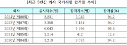 사진제공 연합뉴스정부의 의대 증원 정책에 반발한 의대생들이 대거 휴학하며 내년도 의사 국가 필기시험 접수 인원이 304명에 그친 것으로 나타났다. 이는 지난 필기시험 접수 인원의 약 10%에 불과하다.13일 국회 교육위원회 소속 진선미 의원(더불어민주당)이 한국보건의료인국가시험원에서 받은 자료에 따르면 내년 1월 치러지는 제89회 의사 국가 필기시험에 304명이 신청했다.이난 지난 제88회 필기시험에서 3270명이 접수한 것과 비교했을 때 약 90.7%가 감소한 것이다.이에 따라 필기시험 합격률이 상당히 높다는 점을 고려…