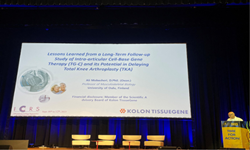 코오롱티슈진은 TG-C 임상 2상시험 결과를 토대로 무릎인공관절수술(Total Knee Arthroplasty, TKA) 지연 가능성에 대한 연구와 함께 퇴행성 척추디스크질환(Degenerative Disc Disease, DDD)의 동물실험 결과를 추가로 공개했다고 14일 밝혔다.코오롱티슈진은 9일(현지시간)부터 12일까지 나흘 간 스페인 바르셀로나에서 개최된 2023 국제연골재생학회 (International Cartilage Repair Society, 이하'ICRS') 학술대회에 참석했다.코오롱티슈진의 연구자문위원회원(…