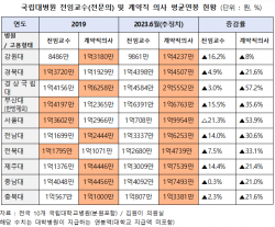 국립대병원 간호사 절반 이상이 입사 2년 이내 퇴직하는 것으로 나타났다. 그러나 국립대병원의 간호사 증원 요청에 대한 정부 승인율은 절반 이하였다.국회 교육위원회 서동용 의원(더불어민주당)이 3일 공개한 자료에 따르면 2021년부터 2023년 7월까지 전국 국립대병원 15곳(본원·분원 포함)에서 4638명의 간호사가 퇴사했다.이 중 1년 이내 퇴사자가 1971명으로 42.5%에 달한다. 2년 이내 그만두는 인원으로 확대하면 2736명으로 전체 퇴사자의 59%다.연도별로는 2021년 2년 이내 퇴사자가 57.7%, 202…