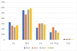 의과대학 진학을 위한 정시 전형이 고3 재학생이 아닌 N수생과 서울권 학생들의 전유물로 점차 굳어지는 추세다.최근 4년 간 의대 정시 모집 합격자 중 10명 중 7명이 재수를 비롯해 3수, 4수생이었으며, 합격자 중에는 서울 소재 고등학교 출신이 가장 많았다.국회 교육위원회 소속 강득구 의원(더불어민주당)이 교육부로부터 지난 2020학년도부터 2023학년도 전국 정시모집 의대 신입생 선발 결과를 제출받아 조사한 결과를 23일 공개했다.교육랩공공장이 분석한 이번 조사에는 수능으로 선발된 최상위 집단의 고3 학생과 N수생의 분포…