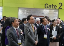 조규홍 보건복지부 장관을 비롯해 김영환 충북지사, 차순도 한국보건산업진흥원장 등이 5월 8일 서울 강남구 코엑스에서 열린 ‘바이오코리아 2024’ 유한향행 부스를 둘러보고 있다. 유한양행은올해 19번째를 맞는 이번 바이오코리아 2024에서 故 유일한 명예회장 업적을 기리고비소세포폐암 신약 렉라자를 비롯 주요 파이프라인 현황을 전시했다.
