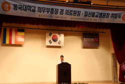 동국대학교 이해원 의무부총장 겸 의료원장과 백용해 일산병원장 취임식이 지난 3월 11일 병원 대강당에서 개최됐다.이날 행사에는 학교법인 동국대학교 돈관 이사장 스님, 동국대학교 윤재웅 총장 등 교직원 200여 명이 참석에 신임 의무부총장 겸 의료원장과 일산병원장 출발을 축하했다.이해원 의무부총장 겸 의료원장은 취임사에서 "현재 의료환경은 급격한 변화와 다양한 어려움에 직면해 있다"면서 "이를 극복하고 더욱 발전하는 의료원이 되기 위해 모든 교직원이 하나로 힘을 모아야 한다”고 강조했다. 그러면서 &…