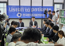 의정갈등이 1년 5개월째 진행된 가운데 처음으로 전공의와 환자단체가 마주앉았다. 전공의들이 하반기 복귀 움직임을 보이면서 환자단체가 특혜 부여에 반대하고 대국민 사과를 요구하고 있는 가운데 만들어진 대화의 자리다.28일 정오 서울 영등포 소재 한국환자단체연합회(연합회) 사무실에서 연합회와 대한전공의협의회(대전협) 비상대책위원회는 간담회를 개최했다.이날 한성존 대전협 비대위원장은 국민들에게 공식 사과했다. 한 위원장은 모두발언에서 "길어진 의정갈등으로 불편을 겪은 국민 여러분께 사과의 말씀을 드린다"며 …